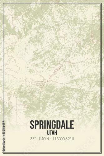 Retro US city map of Springdale, Utah. Vintage street map.