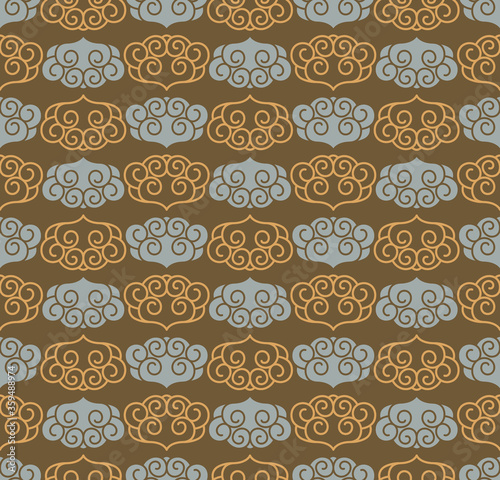 Retro vintage Chinese traditional pattern seamless background spiral curve cross cloud chain frame line