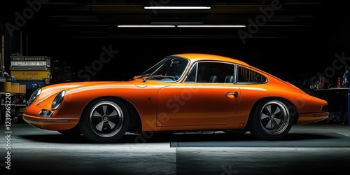 Retro Vintage Sports Car in Dark Garage High Contrast Lighting