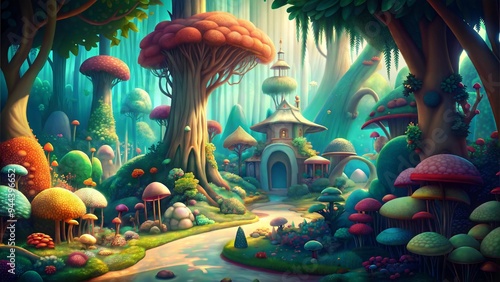 retro whimsical fairy tale enchanted forest glade background