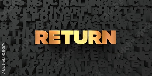 Return - Gold text on black background - 3D rendered royalty free stock picture. This image can be used for an online website banner ad or a print postcard.