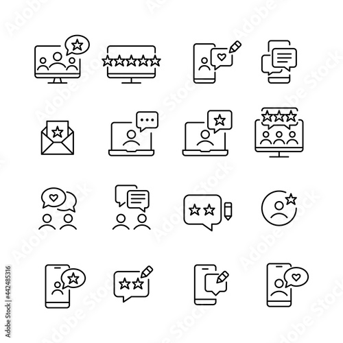 Review, rating and feedback icons. Pixel perfect editable stroke