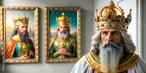Reyes Magos Modern Art Gallery Artistic Scene Glossy Background Contemporary Art Pieces Space for Text Ideal for Art-Themed Advertisements Magazine Covers Photo Stock Concept