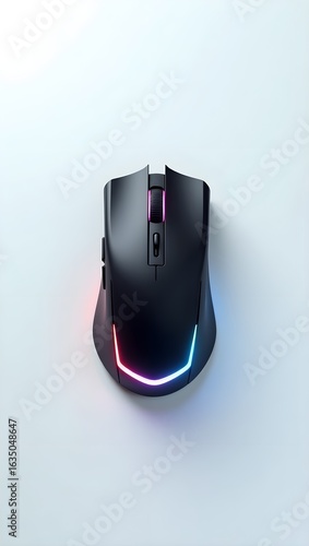 RGB Illuminated Gaming Mouse: Modern, Sleek Design, Top View, White Background