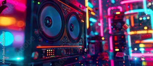 RGB Neon Backlit Music Speaker in Digital Setting - Perfect for Tech, Music, and Gaming Projects
