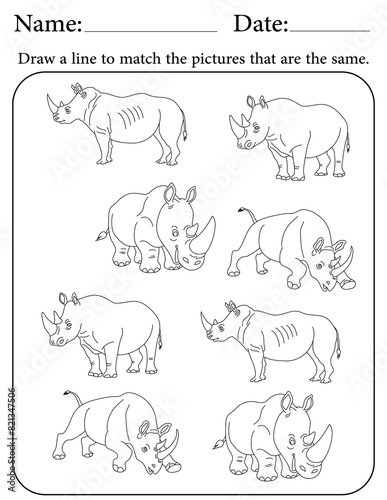 Rhino Puzzle. Printable Activity Page for Kids. Educational Resources for School for Kids. Kids Activity Worksheet. Match Similar Shapes
