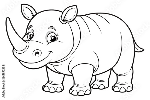 Rhino with a big horn is smiling