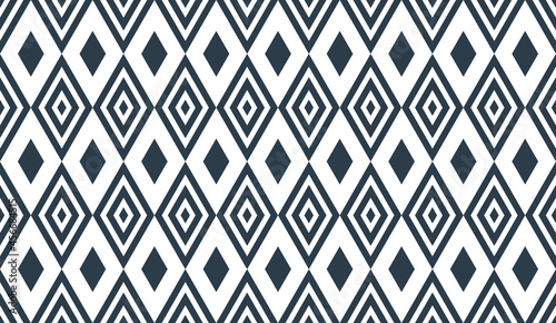 Rhomb seamless geometric vector pattern, rhombus simple black and white wallpaper background, ethnic folk embroidery or carpet style image.