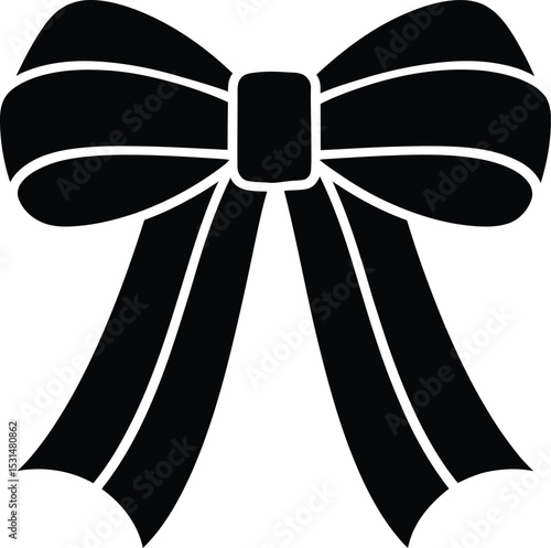 Ribbon Bow Icon – Black Silhouette Decorative Bow Vector Illustration