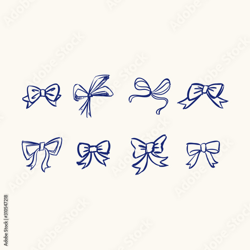 Ribbon doodle drawing set bundle - Christmas Holiday celebration Xmas winter season December Merry Christmas - Snow decoration invitation ornament