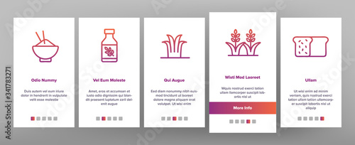 Rice Chinese Culture Onboarding Icons Set Vector. Rice Bread And Boiling Dish, Harvest Bag And Plant, Slow Cooker And Sushi Illustrations