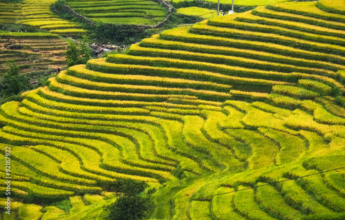 Rice fields on terraced of Mu Cang Chai, YenBai, Vietnam. Rice fields prepare the harvest at Northwest Vietnam.