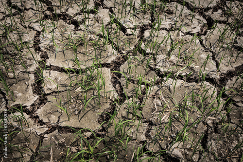 Rice fields waterless and dry cracked soil