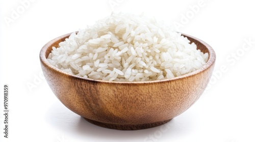 Rice in a bowl on a white background