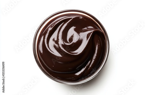 Rich and Creamy Chocolate Sauce in a Glass Bowl on White Background Perfect for Desserts, Baking, and Toppings in Culinary Photography