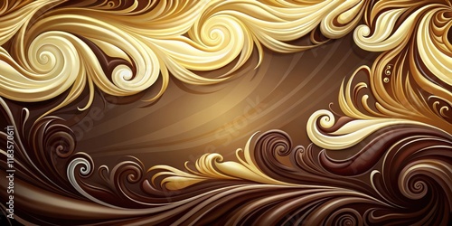 Rich brown chocolate background with swirling patterns of creamy white and pale yellow hues, chocolate, decadent, chocolate, decadent