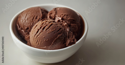 Rich Chocolate Ice Cream Elegantly Scooped into a Plain White Bowl