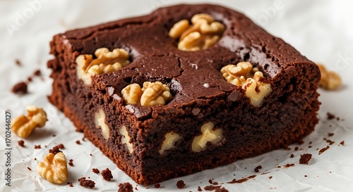 Rich chocolate walnut brownie a delicious dessert treat freshly baked with nuts