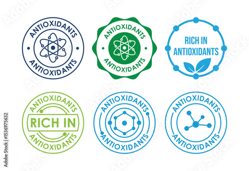 Rich in antioxidants icons set design. Antioxidant rich food label sign symbol