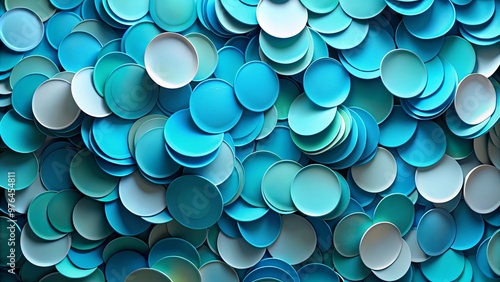 Rich luxury abstract background of blue turquoise paper circles with depth perspective