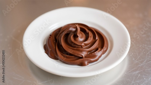 Rich, melted chocolate swirls elegantly atop a white plate, inviting chocolate lovers to indulge in a sweet celebration on Chocolate Day