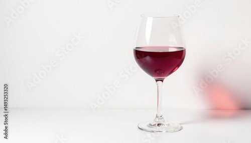 Rich red wine in a glass, pristine white backdrop, still life, cabernet