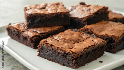 Rich Stack of Chocolate Brownies with Cracked Tops and Dense Fudgy Texture