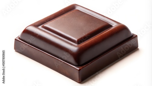 Rich, velvety dark chocolate square with clean edges and subtle sheen, isolated on a crisp white background, inviting