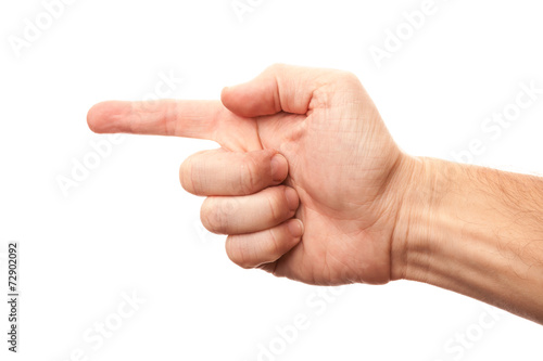 Right male hand with index finger showing left direction