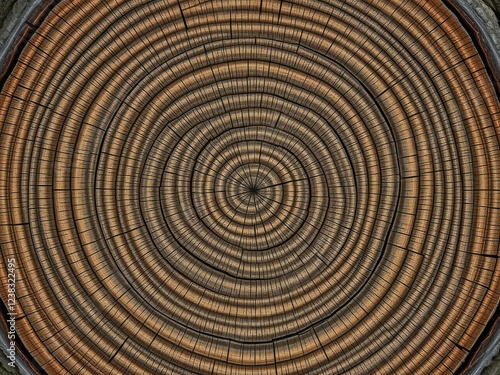 Ring pattern of a tree trunk with visible growth rings, foliage, trees