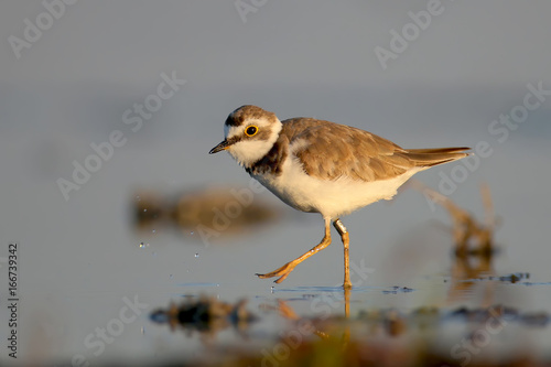 Ringed plover in soft sunrise morning light.