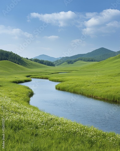 Riparian landscape transformation featuring flourishing vegetation and serene waterways
