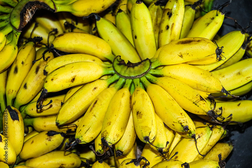 Ripe Bananas with Spots in a Bunch