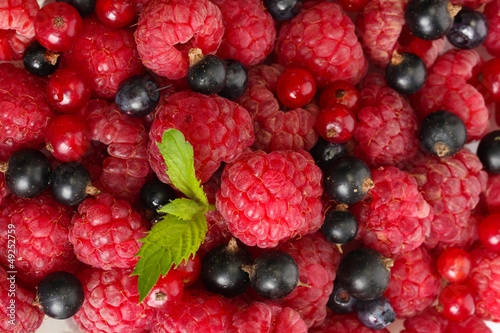 ripe berries with mint, close up.