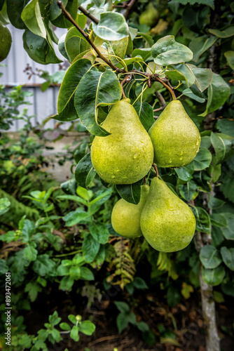 Ripe big pears on a tree in organic garden