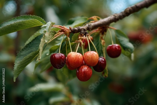 Ripe Cherries on Branch: A Lush Summer Harvest