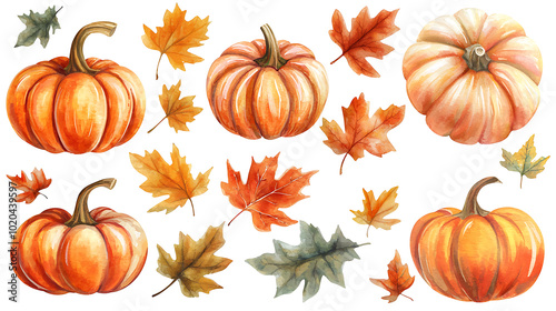 Ripe Colorful Pumpkin Set in Watercolor Clipart