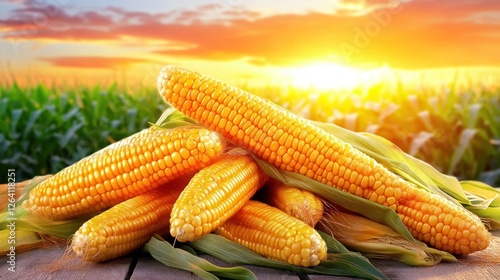 Ripe corn harvest sunset field agriculture