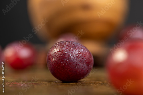 ripe grapes after washing the berries, clean wet grapes safe for eating
