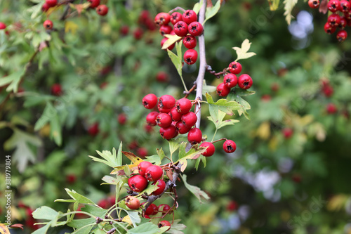 Ripe hawthorn or Crataegus monogyna in autumn