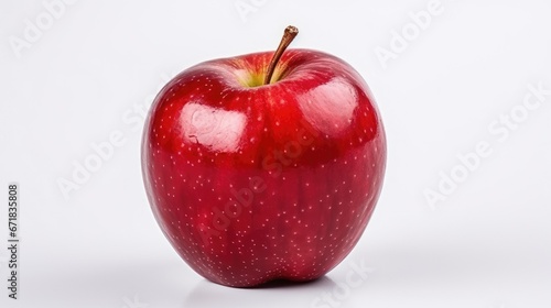 Ripe, juicy, red apple on a clean white background. A fresh, delicious snack full of nutrition. Organic and natural, it's sweet, crisp, and appetizing. A mouthwatering, succulent fruit.