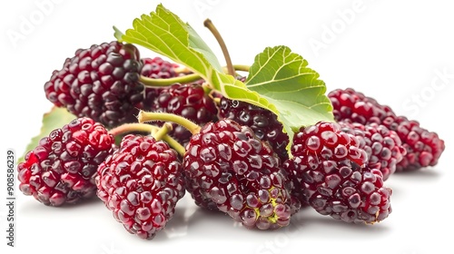 Ripe Mulberries with Green Leaves