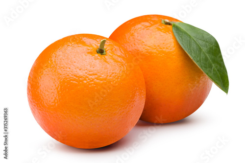 Ripe Orange with leaves isolated on white background. Clipping path.