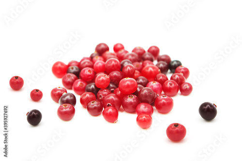 Ripe organic cranberry isolated on white background. Сopy space on a white background.