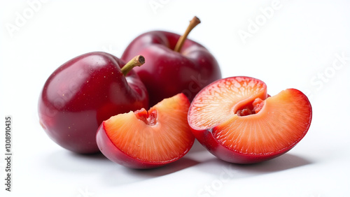 ripe plums delicious fruit white background halves slices snacking baking purposes