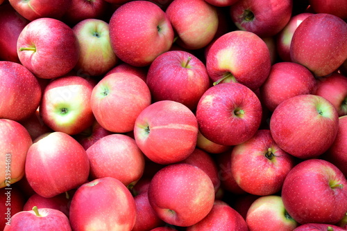 Ripe red apples in an apple crate, harvest crate after harvest in autumn in South Tyrol, banner and background texture