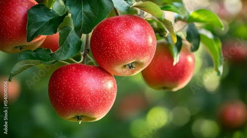 Ripe red apples on a tree branch in a garden. Perfect for topics related to gardening and healthy food.