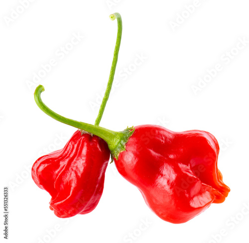 Ripe red chili peppers isolated on a white background. Capsicum baccatum or Bishop's crown pepper.