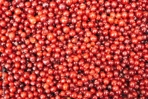 Ripe red cranberry background top view