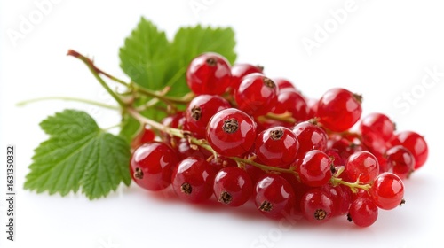ripe red currants on a white background